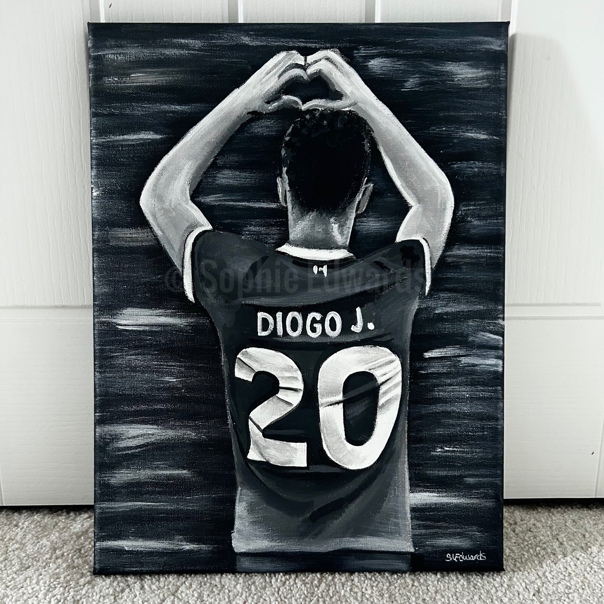 Original painting of Diogo Jota. Size: 30cm x 40cm canvas. Hand painted and signed by Sophie Edwards.